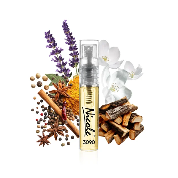 Nicole 3090 należy do kategorii zapachów fougère – świeżych i pikantnych. Kompozycja otwiera się chłodnymi przyprawami, przechodząc w serce z wybieloną lawendą, a kończy na bazie z musujących nut drzewnych i piżmowych. Dzięki innowacyjnej, wodnej formule bez alkoholu, zapach jest łagodny dla skóry, jednocześnie zachowując głębię i trwałość.