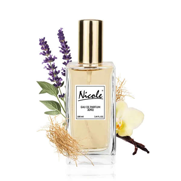Nicole 3092 to zapach z kategorii aromatyczno-fougère. Otwarcie zapachu przynosi mineralne nuty przeplatane liściem fiołka i solą, tworząc świeże i intrygujące wrażenie. W sercu dominują pikantny imbir i szałwia, nadając kompozycji energetyczny charakter. Baza oparta na drzewnych akordach i wetiwerii zapewnia głębię i trwałość, czyniąc ten zapach idealnym wyborem dla nowoczesnego mężczyzny ceniącego wyrafinowanie i styl.