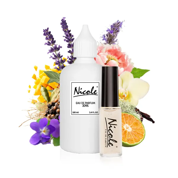 Nicole 3095 należy do kategorii zapachów drzewno-aromatycznych z owocowym akcentem. To kompozycja, która łączy świeżość cytrusów z egzotyczną słodyczą i głębią drzewnych nut. Już od pierwszego kontaktu uwodzi soczystym zielonym mandarynką i jabłkiem, podkreślonymi pikantnym kardamonem i subtelnym fiołkiem. W sercu zapachu rozkwitają nuty mango, lawendy, czarnego pieprzu, paczuli i piwonii, tworząc zmysłową i wyrafinowaną aurę. Bazę stanowią ciepłe akordy wanilii, bursztynu, wetywerii, drewna tekowego i mchu, które nadają kompozycji trwałość i elegancję.