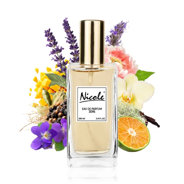 Nicole 3095 należy do kategorii zapachów drzewno-aromatycznych z owocowym akcentem. To kompozycja, która łączy świeżość cytrusów z egzotyczną słodyczą i głębią drzewnych nut. Już od pierwszego kontaktu uwodzi soczystym zielonym mandarynką i jabłkiem, podkreślonymi pikantnym kardamonem i subtelnym fiołkiem. W sercu zapachu rozkwitają nuty mango, lawendy, czarnego pieprzu, paczuli i piwonii, tworząc zmysłową i wyrafinowaną aurę. Bazę stanowią ciepłe akordy wanilii, bursztynu, wetywerii, drewna tekowego i mchu, które nadają kompozycji trwałość i elegancję.