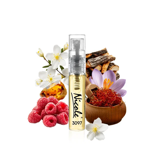 Nicole 3097 należy do kategorii zapachów skórzanych. To kompozycja, która łączy w sobie surowość i elegancję, tworząc wyjątkowy, zmysłowy aromat. Otwarcie zapachu to intensywna mieszanka malin, szafranu i tymianku, które nadają mu słodko-pikantny charakter. W sercu perfum odnajdujemy akordy jaśminu i olibanum, wprowadzające głębię i tajemniczość. Bazę stanowią nuty skóry, zamszu, bursztynu i nut drzewnych, które nadają kompozycji ciepło i trwałość.