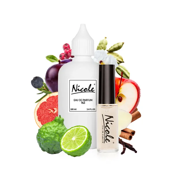 Nicole 763 – 100ml FB to FILLER Nicole wraz z pustą szklaną buteleczką. Filler Nicole to innowacyjne, ekonomiczne i wygodne rozwiązanie, ponieważ dzięki precyzyjnej końcówce pozwala na szybkie przelanie perfum Nicole do buteleczki.