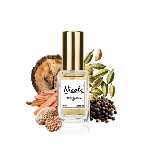 Nicole 770 to drzewne perfumy dla mężczyzn. Nieprzeciętny zapach gałki muszkatołowej, czarnego pieprzu i zamszu utuli wygodnie do podróży Twoich marzeń i snów.