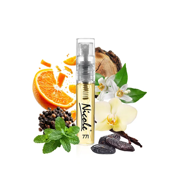 Nicole 771 to drzewne perfumy dla mężczyzn. Świeży, drzewny zapach. Włoska mandarynka, cedr i fasola tonka, zaakcentowane białym piżmem, tworzą orzeźwiającą, zmysłową aurę zapachu. Zapach dla aktywnego mężczyzny.