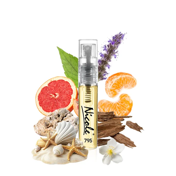 Nicole 795 to drzewno-wodne perfumy dla mężczyzn. Zapach skupiony na właścicielu, otula nutami morskimi. Dla aktywnych i pewnych siebie, dynamicznych mężczyzn.