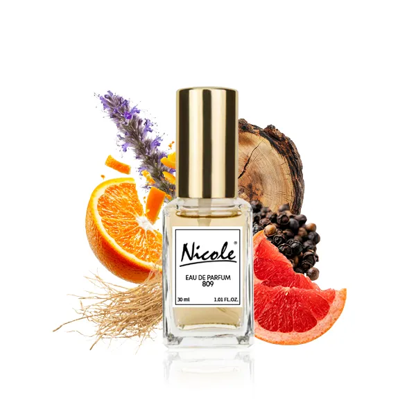 Pod nazwą Nicole 809 – 30ml kryją się perfumy Nicole 809 w masywnej, szklanej buteleczce z atomizerem o pojemności 30ml.
